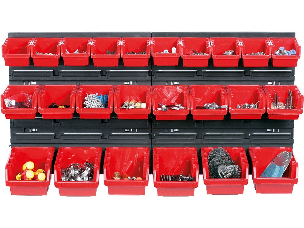 Különböző szögekkel, csavarokkal, anyakkal és egyéb szerszámokkal rendelkezik nagy mennyiségben? Nincs hova tennie? Az ORDERLINE felakasztható rendszer 28 szerszámos dobozt kínál, amelyeknek köszönhetően nem fog kelleni keresni a megfelelő csavart az asztalon lévő kupacban. A termék felakasztható, így rengeteg helyet takarít meg a műhelyben vagy a garázsban.