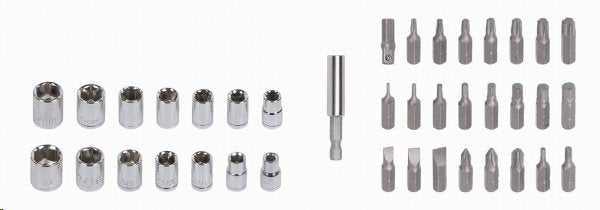 • 23x 1/4 ”-es csavarhúzó bitek: SL5, SL6, SL7, PH1, PH2, PH3, PZ1, PZ2, T10, T15, T20, T25, T27, T30, T40, H1.5, H2, H2.5, H3, H4, H5, H5,5, H6