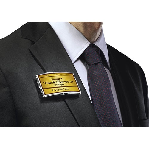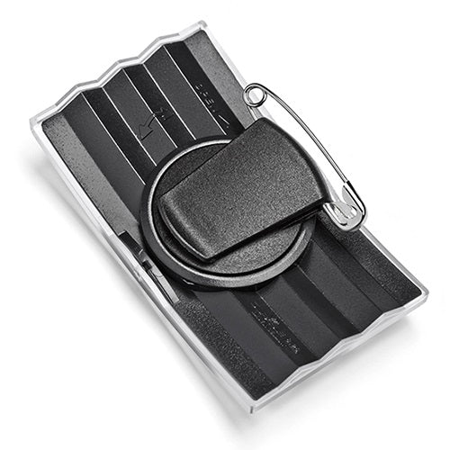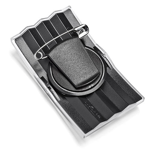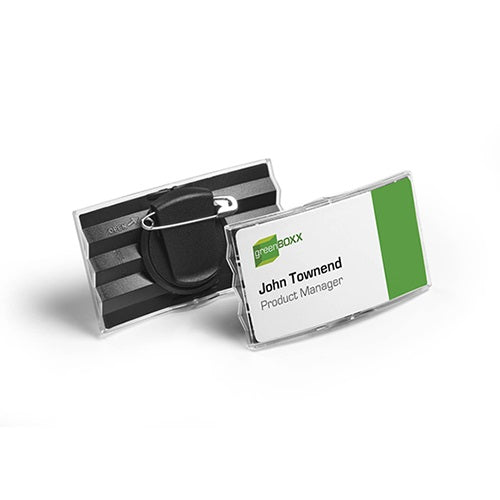 • Névkitűző forgatható kombi klippel, ruhához tűzhető vagy felcsíptethető
