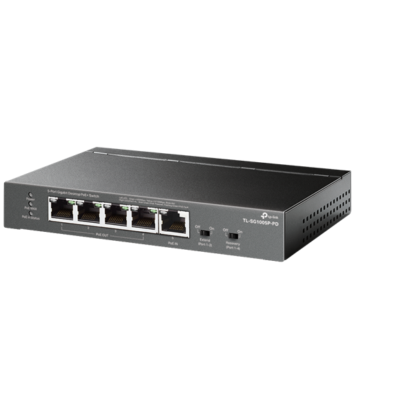 5 portos Gigabit asztali PoE+ switch 1 portos PoE++ bemenettel és 4 portos PoE+ kimenettel