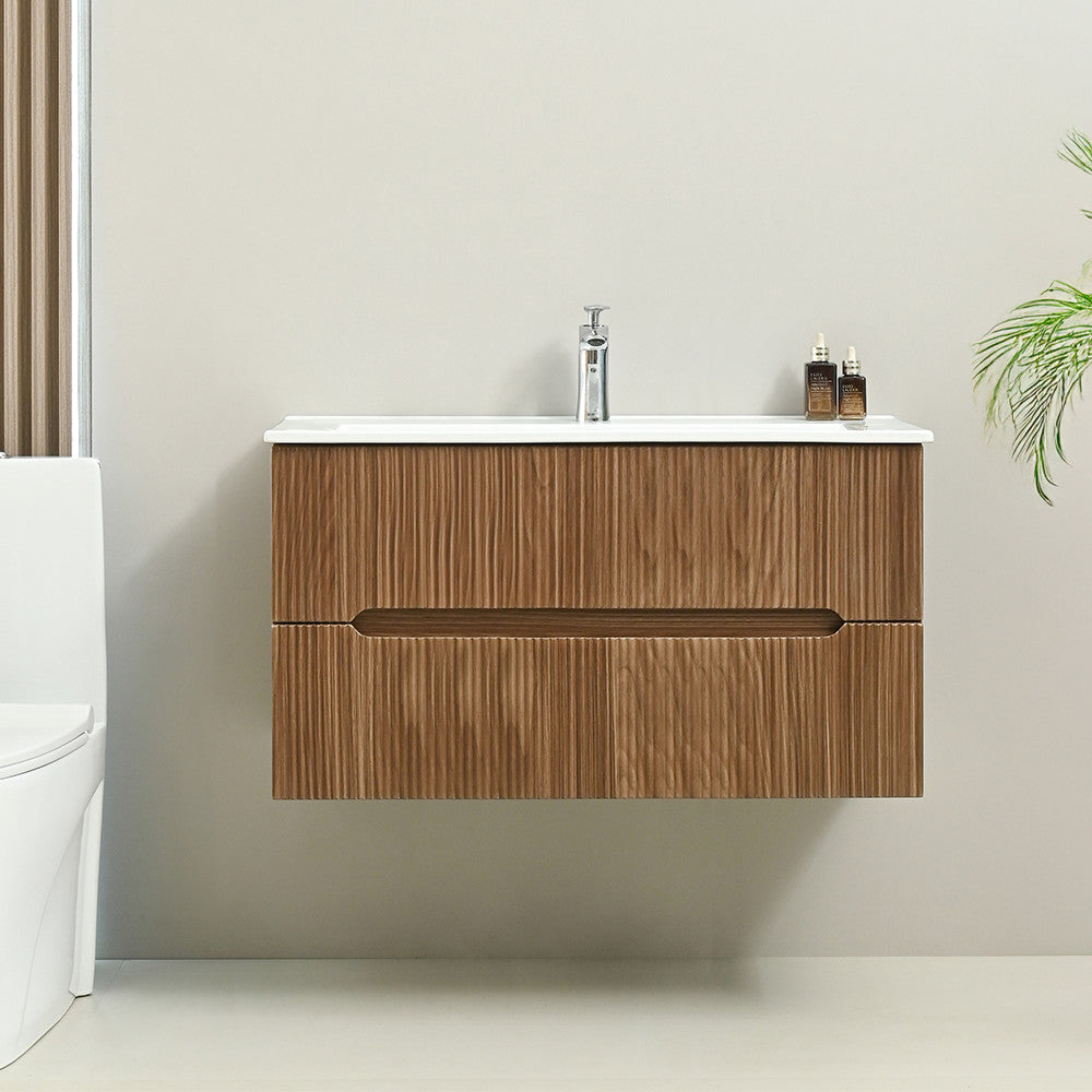 Trent 100 alsó fürdőszobabútor kerámia mosdóval 2 fiókos, sunset tölgy