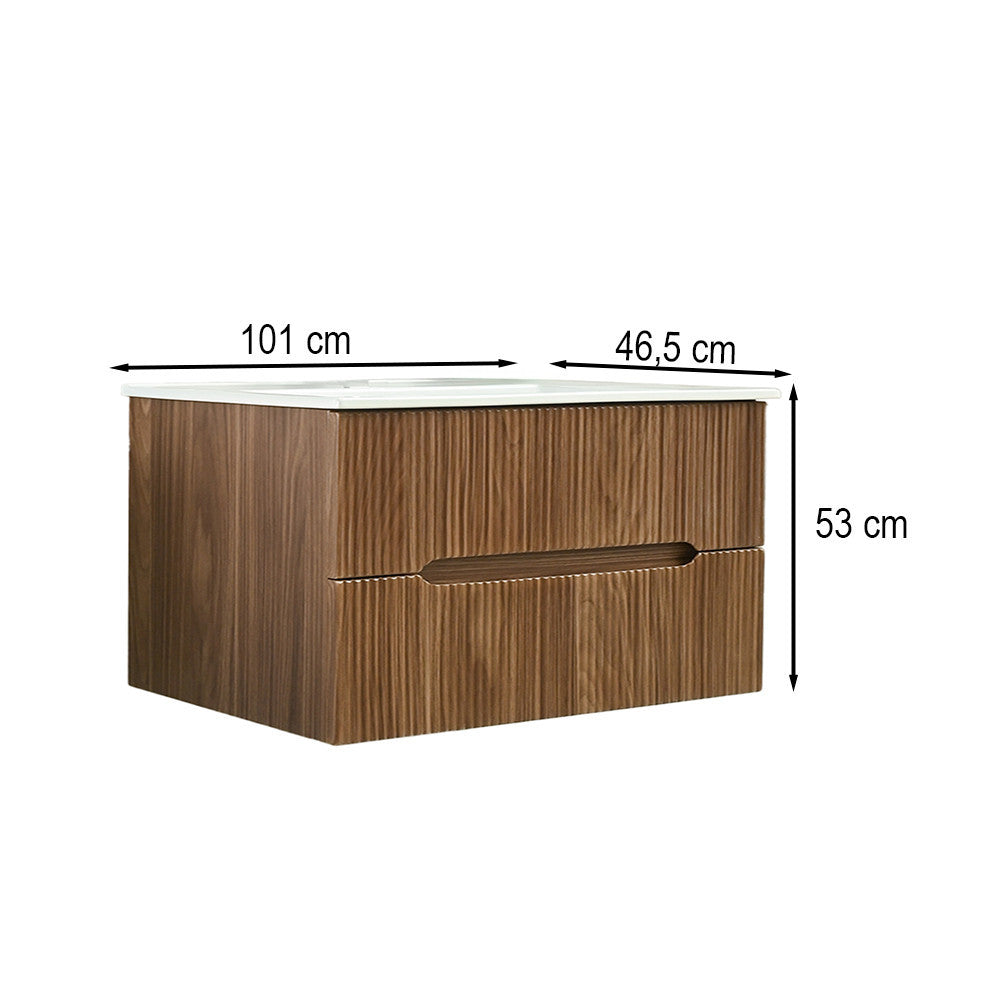 | Termékverzió | Trent 100 alsó fürdőszobabútor kerámia mosdóval 2 fiókos, sunset tölgy |