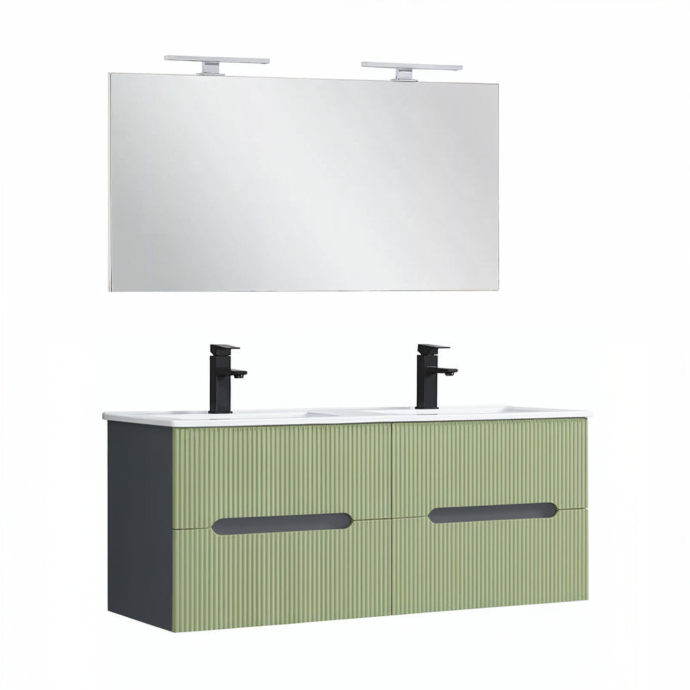Leziter Trent Fürdőszobabútor 120 cm kerámia mosdóval (4 fiókos) tükörrel Antracit szürke - Világos zöld