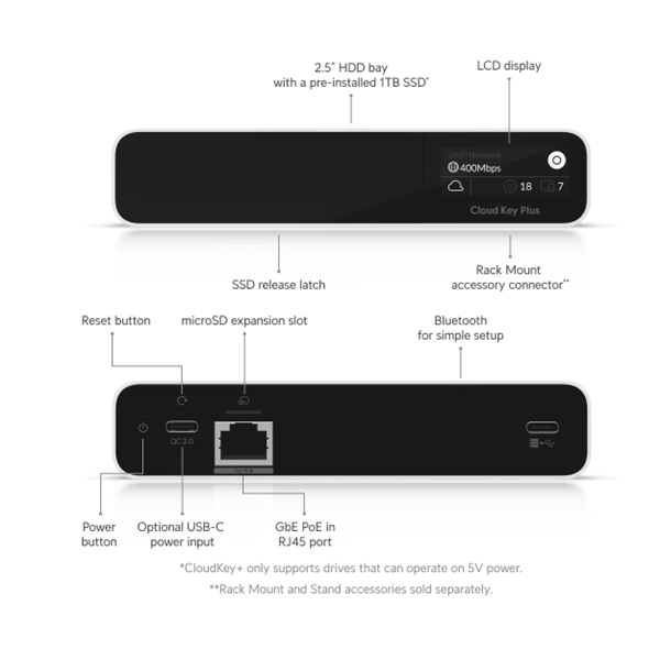 *CloudKey+ only supports drives that can operate on 5V power. Drives that require additional power are not supported.